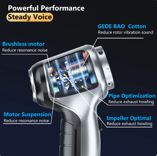 Powered by a robust German brushless engine, it delivers powerful suction, efficiently capturing dust and debris from various surfaces in your home, car, and more with low noise and power of 95000Pa!